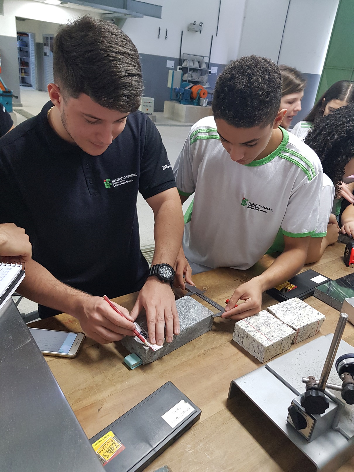 Os alunos da turma M16, do curso Técnico em Mineração,realizaram aulas práticas no laboratório de edificações acompanhados da professora Caroline Belisário Zorzal e do técnico de laboratório/mineração, Bruno do Vale Miotto. As aulas aconteceram em dois momentos: primeiramente, houve a preparação dos corpos de prova e, em seguida, o rompimento desses corpos.