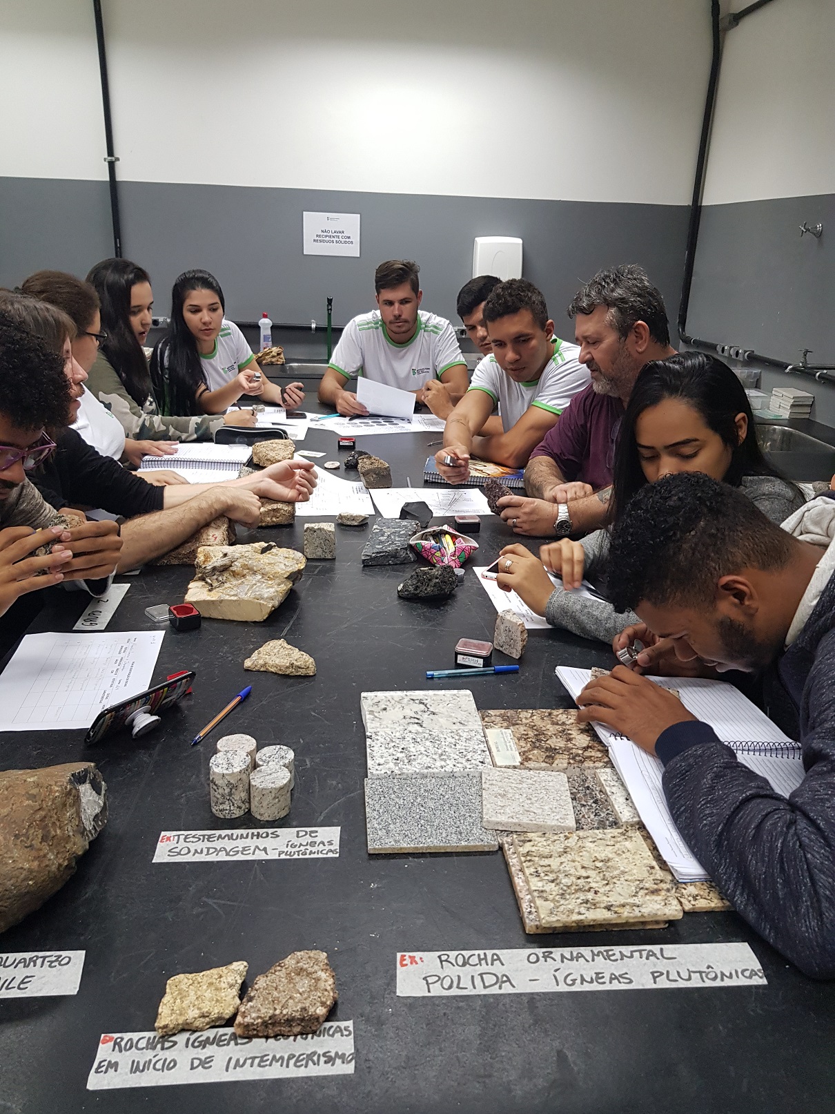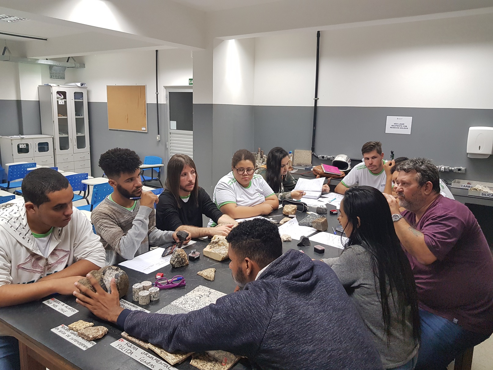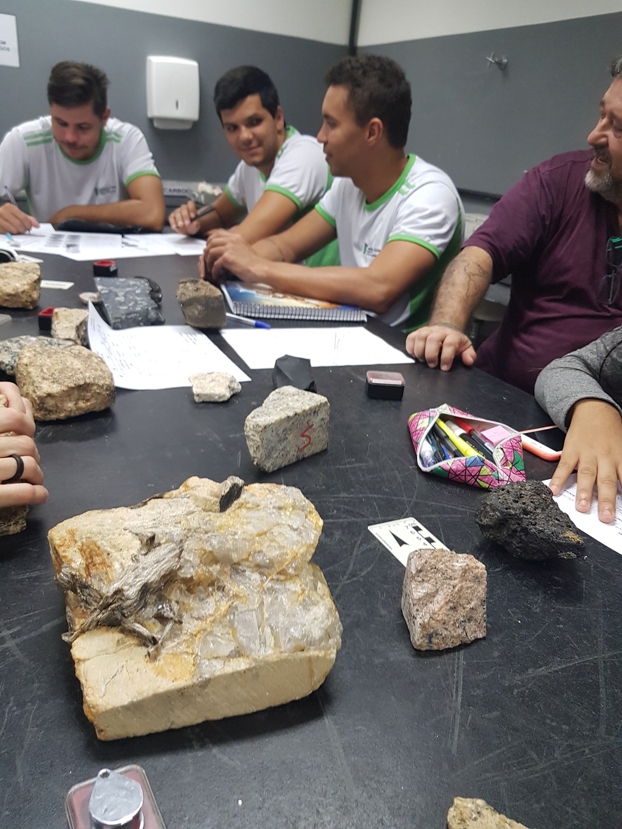 As aulas aconteceram no Laboratório de Descrição de Amostras Macroscópicas sob a orientação do professor da disciplina, Wagner da Silva Andrade, e do técnico de laboratório/Mineração, Bruno do Vale Miotto.