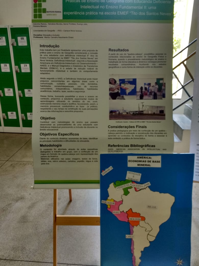 No dia 28 de novembro, aconteceu em nosso campus o Seminário de Práticas Pedagógicas Inclusivas coordenado pela professora da disciplina de Educação e Inclusão, Mariza Nascimento Ziviani. Na ocasião, os alunos da turma Geo 3 (Licenciatura em Geografia) apresentaram trabalhos em formato de pôster, refletindo análises e estudos realizados ao longo do semestre.